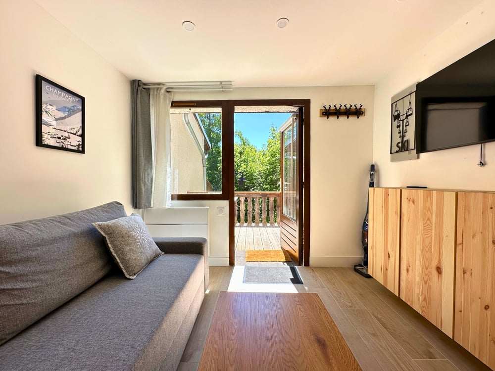 L’Ourson | 2 min from the slopes – cozy and comfortable in the heart of the village Unpack your bags in this charming renovated 1-bedroom apartment, located in the heart of Champagny-en-Vanoise. Just a 2-minute walk from the gondola, this warm and functional space is ideal for a couple, a small group of friends, or a small family.