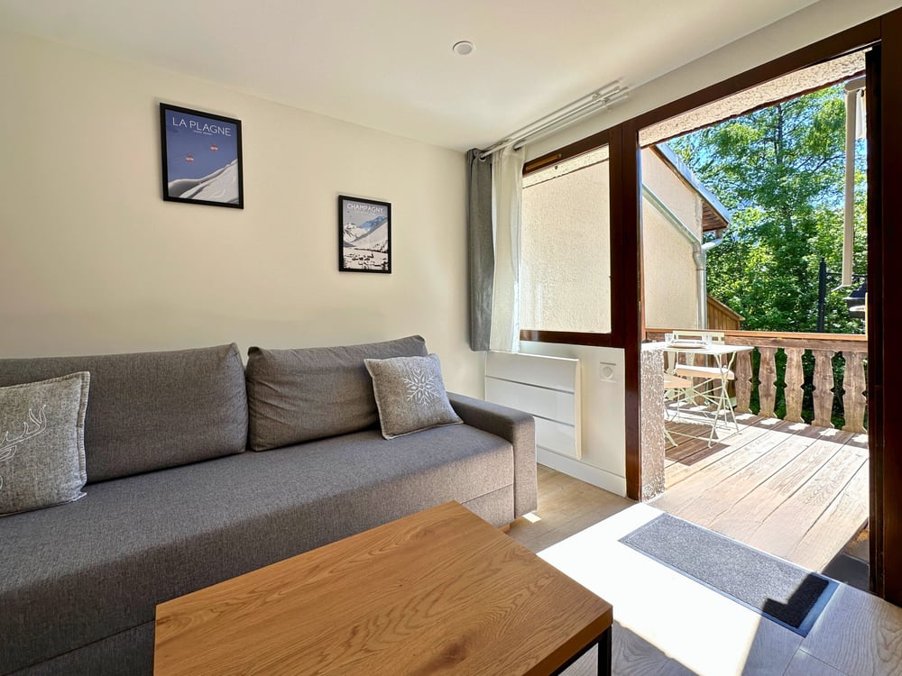 What you’ll love : Ultra-central location: shops, restaurants, and gondola within walking distance South-facing terrace with no direct view from others Fully equipped kitchen: Nespresso, kettle, dishwasher Smart TV (mobile hotspot required) Separate bedroom + sofa bed for kids or friends Modern bathroom with comfortable shower and toilet Secure ski locker nearby Bed linen and towels included in winter, optional in summer Sleeping arrangements: 1 bedroom with a double bed 1 sofa bed: ◦ not unfolded = suitable for 1 child ◦ unfolded = fits 2 children or 1 adult occasionally Access & Shuttle: Paradiski gondola 150 m away Easy access from Moûtiers (train + shuttle) Chambéry Airport 1h away, Lyon/Grenoble/Geneva ~2h Perfect for: Couples on a mountain getaway Families with 1 or 2 children Friends on a short ski or hiking trip The Moûtiers TGV train station is 25 minutes away, with quick access to the highway. A shuttle service is available from Moûtiers.